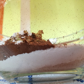 2) mescolate la farina Timilia con la farina di Maiorca, il cacao, le spezie e il lievito.